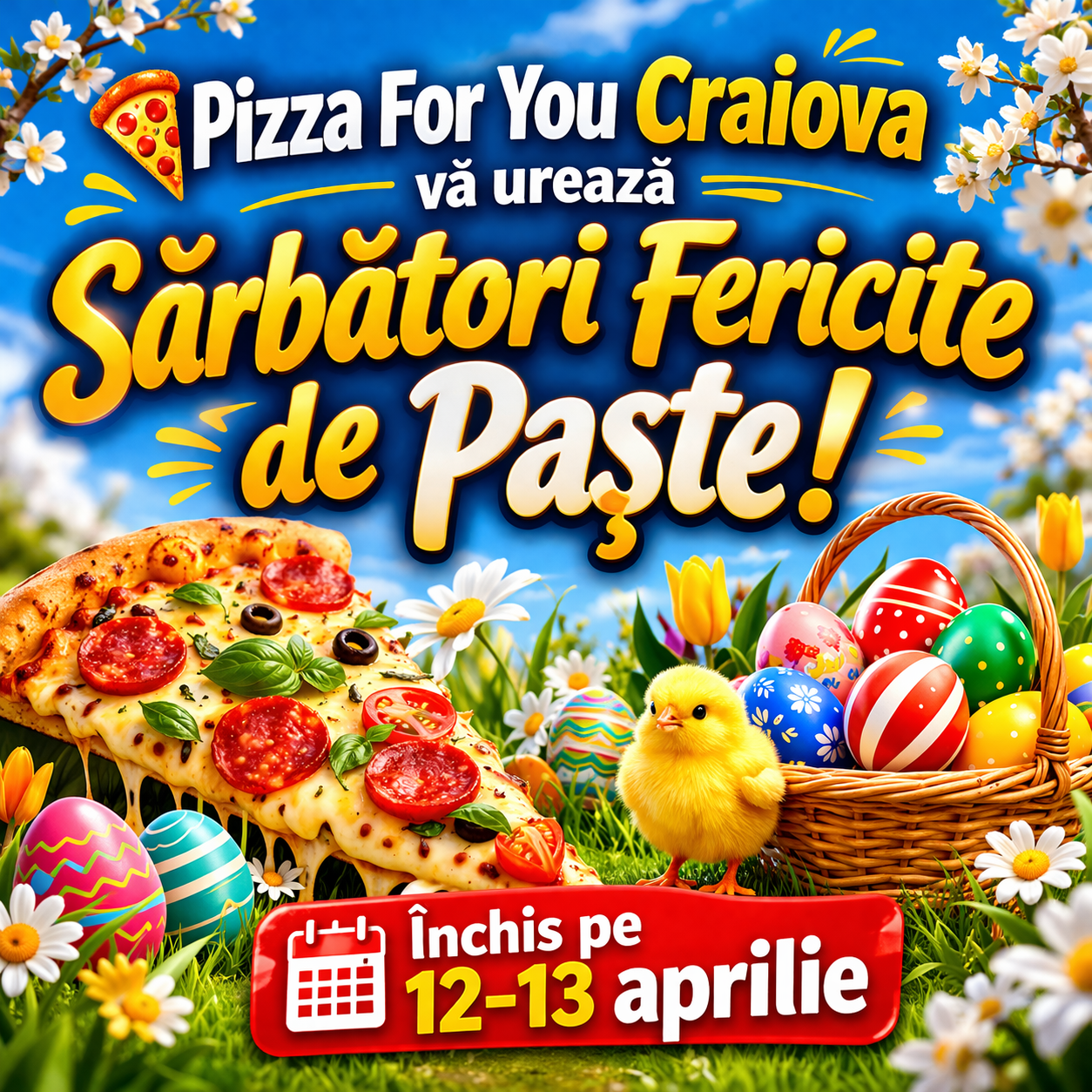 (aluat pizza, sos rosii, mozzarella 100%, sunca praga, salam, masline)